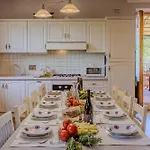 Kávé/tea készítő, hűtő és konyhai edények szintén elérhetők a vendégek számára. A farmház lehetőségei közé tartozik a napozó dekk és napozóterasz.